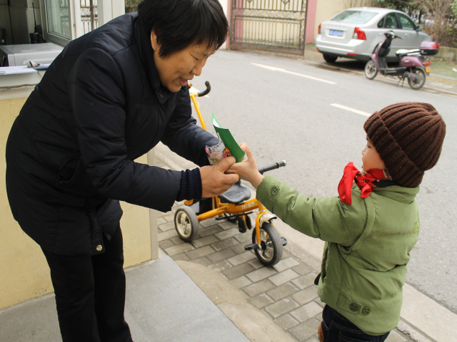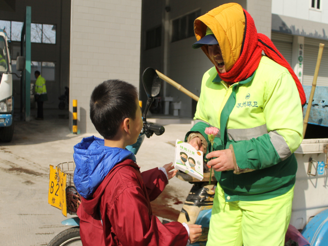 干净的马路、整洁的小区、有序的轨道交通站点……这些我们看似理所当然的场景,蕴含着一群美丽阿姨的默默付出。当我们还沉浸在香甜的梦中,她们已经早起工作,迎着风雨,不畏严寒。为了感激她们,大班的孩子们带上自己的保温壶,来到社区,为环卫工阿姨、轨道交通的工作人员递上一杯热水,送上一个口罩,谢谢她们以自己的付出换来我们洁净、便利的生活环境。瞧,阿姨们看到可爱的孩子与暖心的慰问,都绽放出最美的笑容。