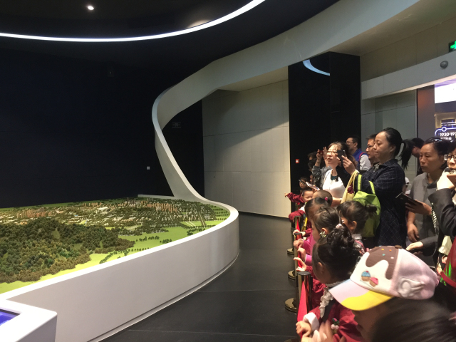 中大班的孩子首先来到了高新区有轨电车基地进行参观。在引导员的带领下他们了解了有轨电车的发展历史、特点和规划模型等。随后大家又马不停蹄地来到了电车维修车间,他们了解到如果电车发生故障,这里的牵引车将会从这里出发把电车拉回来进行维修,孩子们和爸爸妈妈们一个个都听得非常入迷,都纷纷拿出相机与电车合影留念。