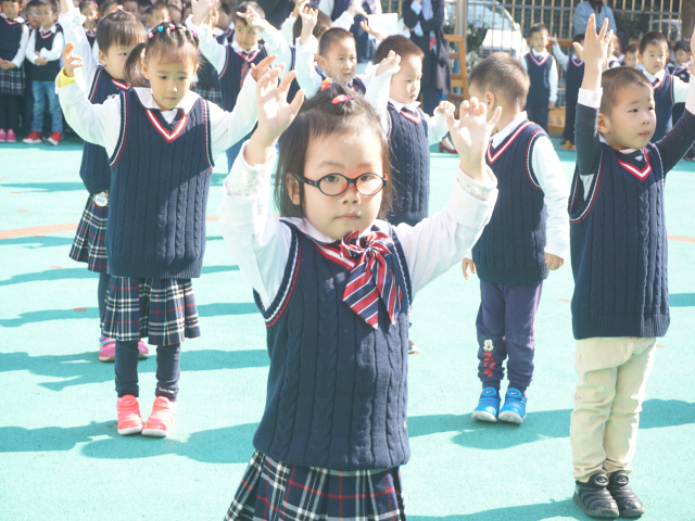 在这收获的季节,新康实验小学校附属幼儿园开展了幼儿早操韵律操评比活动。