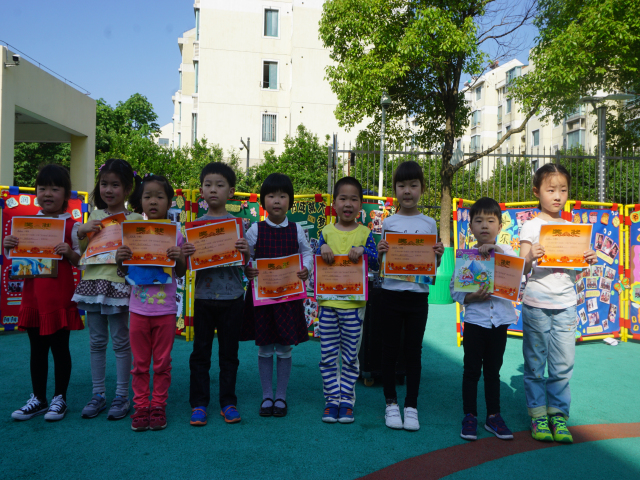 此外,园部还在家长自荐、班级推选的基础上,评选出“故事大王”、“最佳朗读者”的小朋友和家庭,并为他们颁奖,每个班级都做了展板,让更多的孩子和家长参与其中。