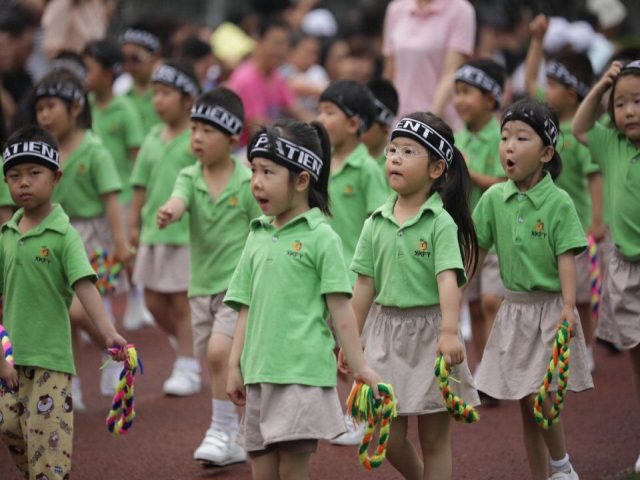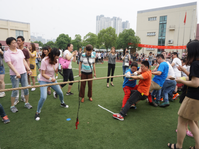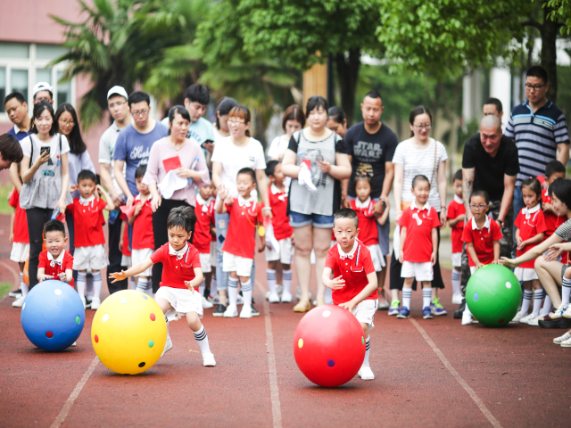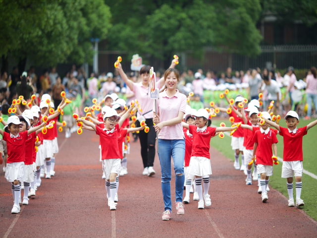 整齐庄严的入场仪式、缤纷多彩的花式操表演为运动会做了热场,而家长们的跳大绳、拔河以及接力跑比赛则迅速点燃全场,掀起了一轮比拼热潮。在丰富多样的亲子运动项目中,家长和孩子们都发挥出了拼搏、勇敢、合作的体育精神,不仅锻炼了身体,也真正地体会到了运动的快乐。胸前的一块块奖牌闪烁着每个小运动员的努力和喜悦。