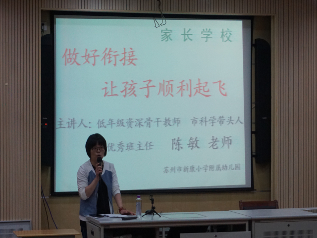 为了帮助家长做好孩子入学前准备,新康小学附属幼儿园邀请沧浪实验小学教导主任、苏州市学科带头人、省“五一”劳动奖章获得者陈敏老师针对大班家长作了“做好幼升小衔接”的专题讲座。