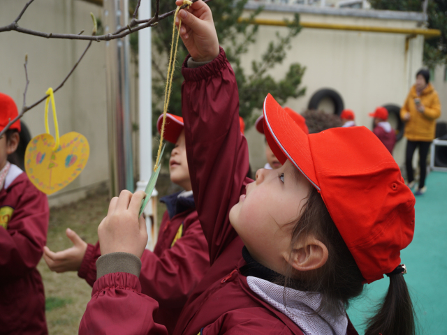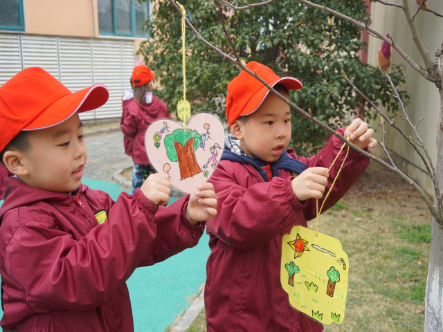 。他们拿着自制的护绿小卡片在老师的带领下,给幼儿园的绿化植物挂上护绿牌,充满爱心的行动表达了他们对花草树木的爱护和祝福。