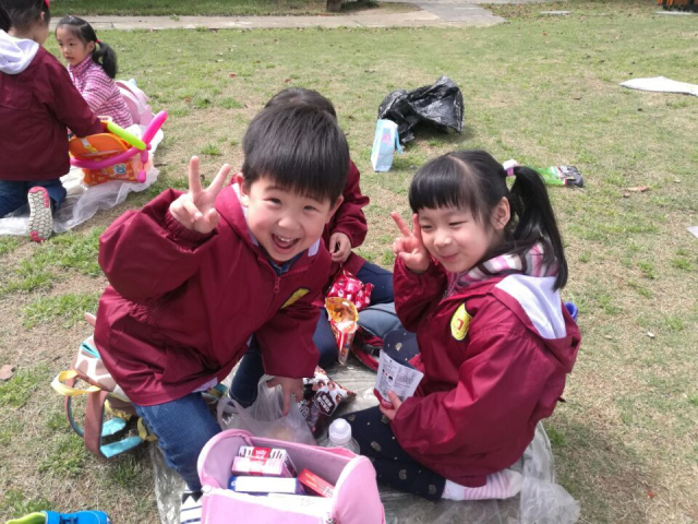 一路上,孩子们欣赏着道路两旁的景色,一边走,一边与同伴谈论着自己的发现。他们与大自然亲密接触,与小花小草合影。在老师的引导下,孩子们发现许多春的足迹:碧绿的草地、河岸边的柳树是他们讨论的对象;脚下的鹅卵石、飘落的花瓣、草丛里的树枝是他们探究的目标;草地里的昆虫、湖里的小鱼是他们亲密的玩伴。“白象湾”公园处处留下了孩子们快乐的笑声,大家都期待着与春天的下一次约会。