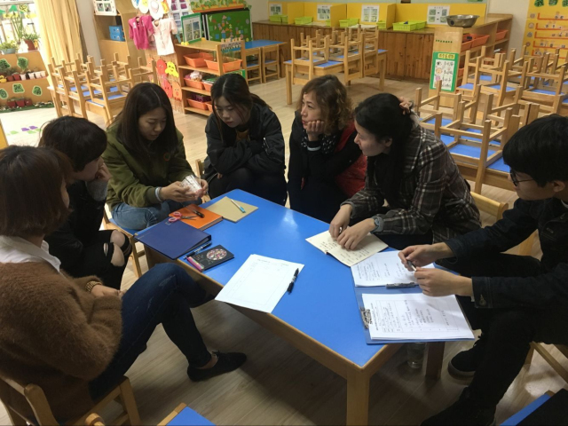 语言游戏是一种为幼儿提供游戏情境,让幼儿按照一定规则练习口头语言的游戏,它能培养幼儿在口语交往中迅速、机智、灵活的倾听和表达能力。如何让语言游戏更有效,成为了新康小学附属幼儿园老师教研的内容。