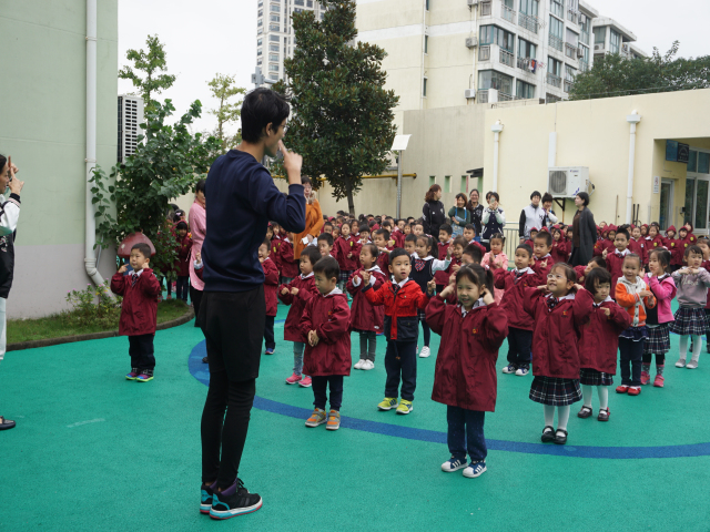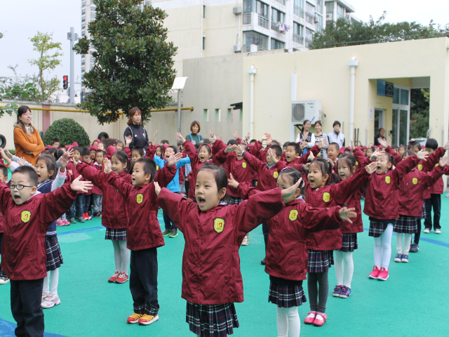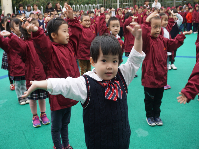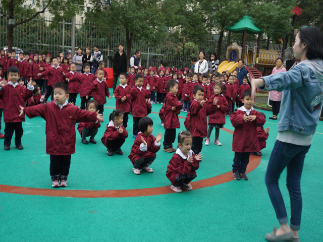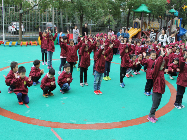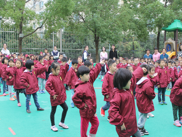 为了增强幼儿的体质,激发幼儿参加体育活动的兴趣,每学期新康小学附属幼儿园都会举行幼儿早操、韵律操的比赛活动。本学期我们的早操韵律操比赛又如期在操场上举行了,整个活动都在快乐的气氛中进行。