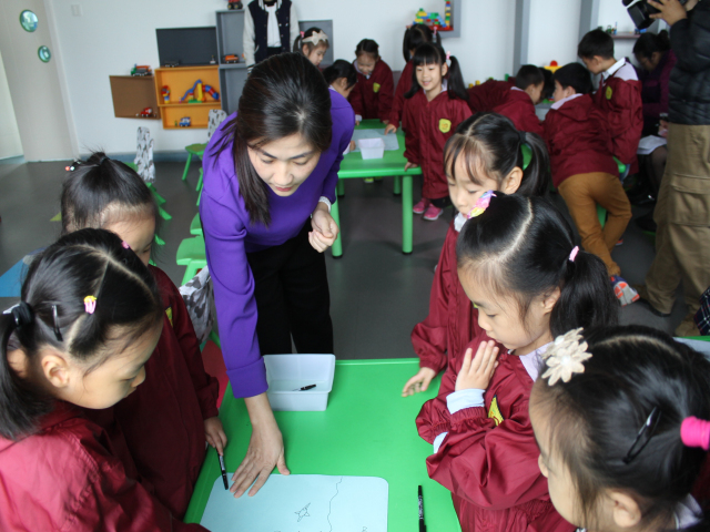 这些名师们从她们身上展示出了不凡的师者气质、鲜明的教学风格和充满智慧的教学艺术。她们将《指南》的精神充分渗透到教学活动的各环节中,思路清晰,方法多样,内容有趣,她们不时在与孩子们的互动中碰撞出精彩的火花。听课的老师们纷纷表示,今天令她们感受最深的不仅仅是名师们精湛的教学艺术,更是渗透在每一环节、每一细节间的教学思想和教学精神。