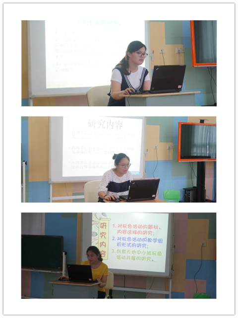在今天的课题交流活动中,老师们都根据本班特色认真制作了汇报PPT。例如:小三班结合创意天地活动,进行幼儿玩色活动的研究;大三班通过幼儿萌娃游戏屋的自主游戏培养幼儿社会交往能力,其他班级也根据自己的实际情况生动地讲解并配以真实的照片进行介绍与总结。每位老师介绍结束后,苏州市教科院的潘家康老师进行了现场点评,肯定了老师们进行的踏实研究,同时也提出了下阶段的工作希望。