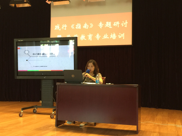 开学在即,姑苏区教师发展中心组织了践行《指南》专题研讨暨学前教育专业培训活动在阊西实验幼儿园如期举行。此次培训活动邀请了新康小学附属幼儿园何晅园长给各幼儿园业务园长、骨干教师进行了《基于幼儿关键经验的集体教学活动》的讲座。