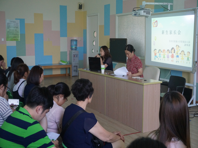 会议中,何园长向家长介绍了幼儿园的办园方向及教育理念,并且和大家探讨分享了一些非常先进、科学的育儿观念,帮助家长分析了从家庭走向幼儿园时孩子的一些不适应,并提出了相应的教育建议、需要支持和配合的事项等。然后,幼儿园副园长王老师及园长助理龚老师,就家长们关心的孩子在园的一日生活作息时间安排、以及生活、学习、游戏等保教内容作了详细介绍。两个半小时的会议秩序井然有序,家长们神情专注地聆听着,并不时记着笔记。