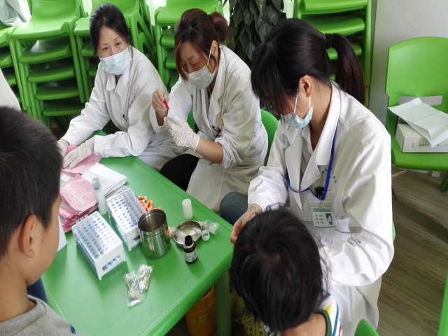 为全面了解幼儿的身体发育状况,给幼儿健康成长、疾病预防提供有效依据,近日,社区医务人员走进新康小学附属幼儿园,为全园四百多名幼儿进行了一年一次的全面健康体检活动。