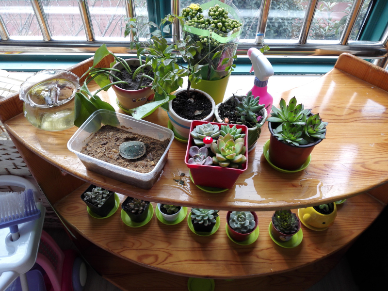 在这欣欣向荣,生机勃勃的春日里,我们又迎来了新的学期。新康小学附属幼儿园的小朋友们早已悄悄地为自己班级的自然角添置了很多花草鱼虫。教室在自然角的映衬下春意盎然,富有生命。