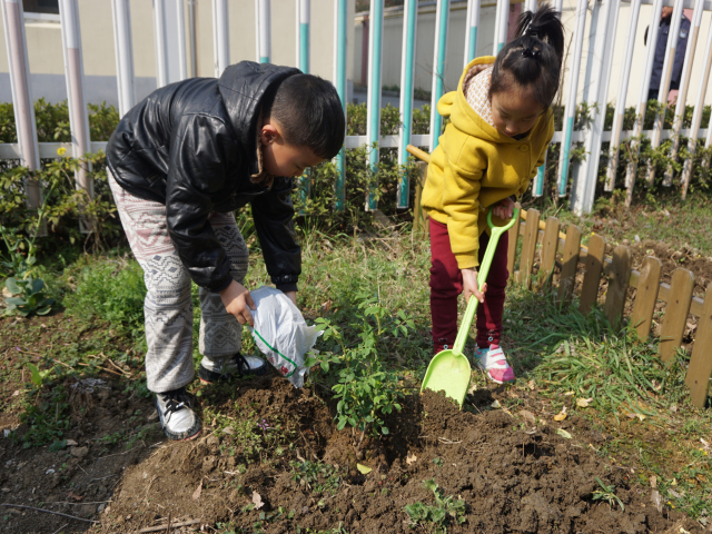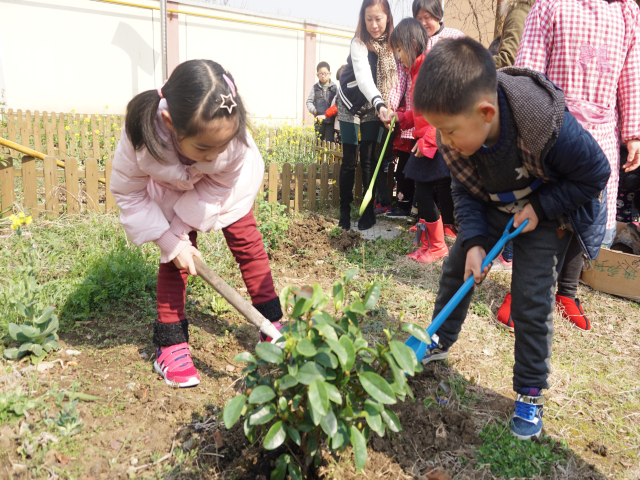 小班的孩子为自然角的植物浇水,激发了爱护花草树木的情感;中大班的孩子们走进种植园地,挽起袖子为植物清除杂草,种植小树苗。你瞧!他们在教师的指导下体验挖坑、播种、培土、浇水等一系列种植过程,“小树小树你快长大吧”、“小树苗,小树苗,我爱你”……孩子们一张张开心的笑脸与春日里生机盎然的花草相映成辉。大家在活动中充分体验到了亲手种植带来的快乐!