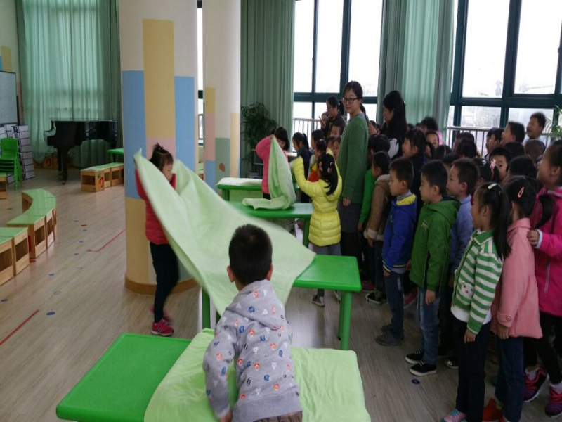 为了巩固幼儿的自我服务意识,提高孩子的生活自理能力,近日,新康小学附属幼儿园大班的孩子们在多功能厅里举行了一次别开生面的叠被子比赛。