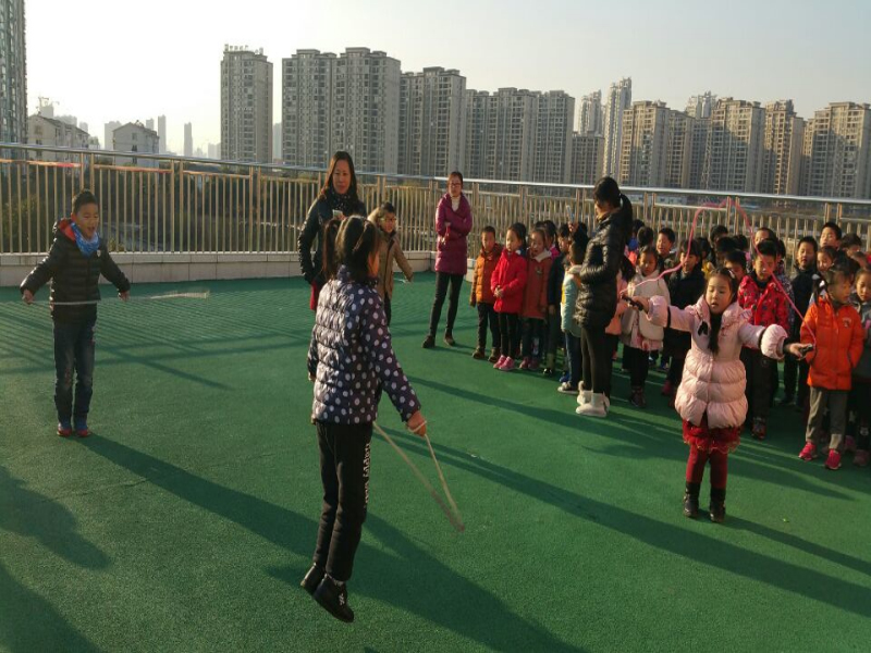 大班年级组本学期开始就普及了幼儿跳绳运动,经过三个多月的练习,孩子们基本掌握了跳绳的技能。为了更好地激发幼儿跳绳的积极性,近日,新康小学附属幼儿园组织大班幼儿开展了“快乐运动我最棒”跳绳比赛活动。