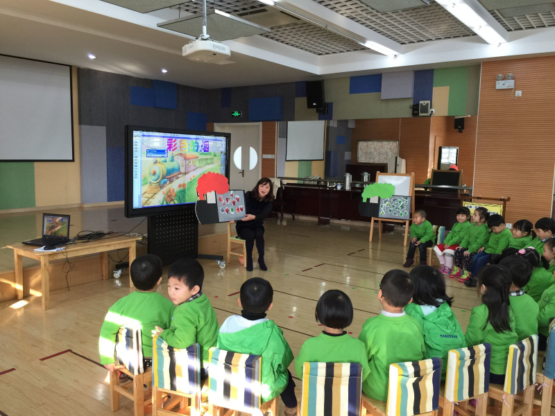 活动中何晅老师给13家幼儿园的老师进行实战教学,教学活动中主要运用电子白板技术进行了一个小班《语言活动:彩色的烟》。通过一个有趣的绘本故事,引导幼儿学说短句:“吃点XX(颜色)的XX(果蔬)吧。”让每一位幼儿都能有机会大声的说。在整个活动中,电子白板的运用十分巧妙,能够很好的调动活动的气氛,激发幼儿参与活动的热情。之后,何老师又针对电子白板在教学活动中的运动进行了专业的讲座,从理论到实际运用,生动有趣的将电子白板的技术运用展示给大家。