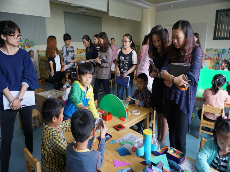 幼儿园目前正在对学习性区域活动开展教育研究活动,从幼儿园到各班在材料提供、场地布置、时间调整上都有了重大的改变,大家都在实践中摸索。张主任通过现场观摩了各班的学习性区域活动后,与老师们及时交换了意见,并鼓励大家提出在实际操作中的困惑与矛盾,并一一进行了分析、探讨,并提出了许多具有建设性的意见与想法,让老师们受益匪浅。