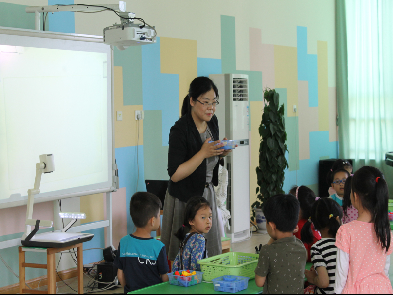 活动开始前,朱老师针对《指南》中的数学领域内容,提出数学教学情景化、游戏化的重要性,并指导听课教师如何从教学目标、教学内容、教学过程、幼儿互动等方面进行观摩学习。活动开始,新康附幼的何晅老师展示了小班数学活动《建造停车场》。活动以乐高积木为辅助材料,引导幼儿感知空间,比较大小并能根据物体的大小进行匹配,活动新颖、有趣,幼儿在游戏中不断探索学习;崇道附幼的沈茜老师带来的中班数学活动《整理管子玩具》体现了教学生活化,活动引导幼儿尝试按照积木的形状特征制作图形标记并用数字记录玩具的数量,学会了分类整理。最后一节活动是挹秀幼儿园的杨晓枫老师执教的《帮助鸡妈妈》。在数鸡蛋、捡鸡蛋、装鸡蛋的情景中,引导幼儿手口一致的点数5以内的数量,并说出总数。这三个活动老师与孩子们自然的融入在一起,活动气氛轻松,师幼互动良好,幼儿参与积极主动,自始至终体现了课程游戏化的教学理念。活动后,工作室又组织了有针对性评课研讨活动。三位教师分别作了说课与反思,听课教师也针对三个活动中教学目标的达成、教学手段的应用等方面提出了意见与建议。