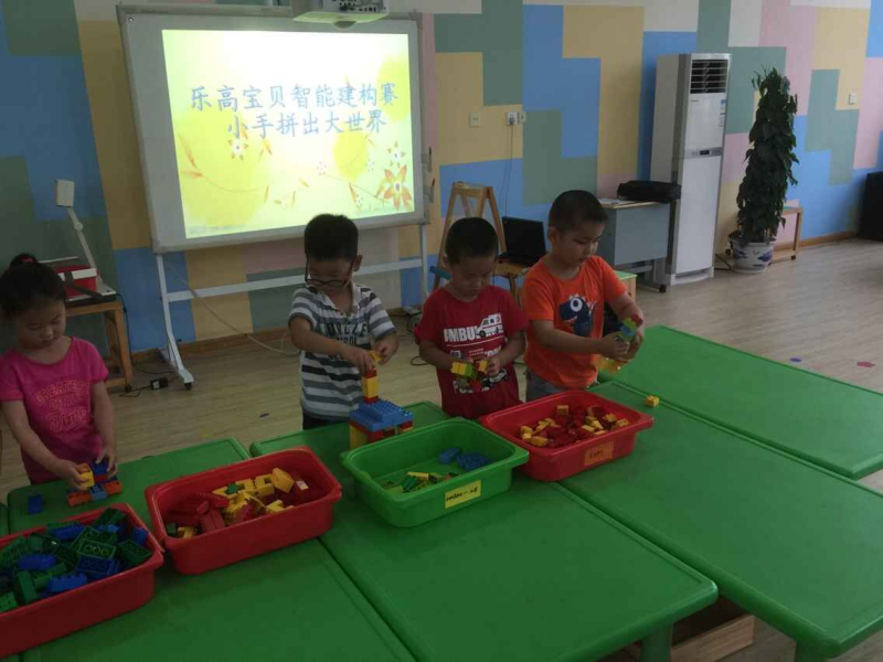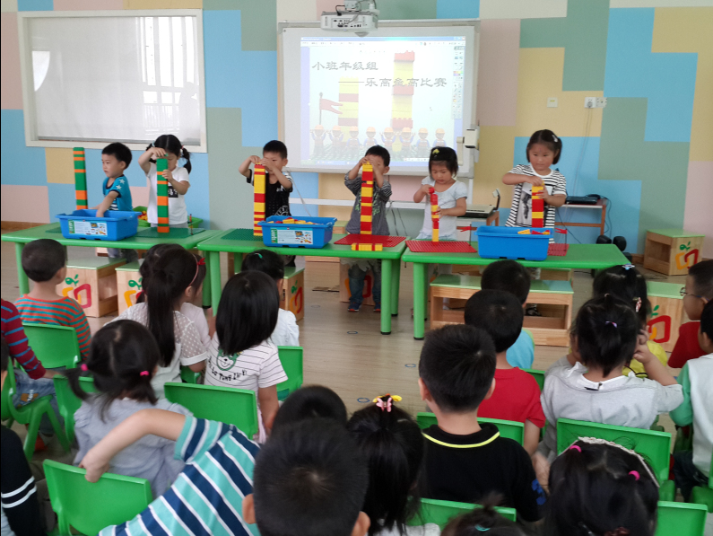 本次比赛有个人赛、双人赛、团体赛等,并且,根据孩子年龄的不同,选择比赛的内容也不同。小班在规定的时间内看谁垒得高,中班在规定的时间内看谁能搭出规定的作品,而大班则是发挥他们的想象力搭建未来的车。赛场上孩子们一个个聚精会神,俨如一个个真正的建筑师,陶醉在自己的创作之中。有的自己闷头“苦干”,有的与同伴合作,有的主动向老师提问表达他们的新想法,每个孩子都非常的投入。