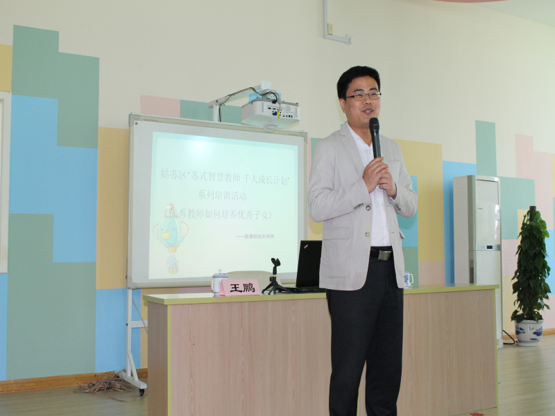本次培训是由华东师范大学的王鹏博士带来的讲座《优秀教师如何培养优秀子女》。王博士以风趣幽默的语言、生动有趣的实例深入浅出地分析了教师扮演的三大误区:不扮演说教者,真正理解幼儿;不扮演批判家,让幼儿拥有自我价值;不扮演法官,让幼儿自由发展,并以此为依据有针对性地为教师们提供了一些正确的理念,如教师应该扮演的角色是:精神的供养者,爱的使者等等。