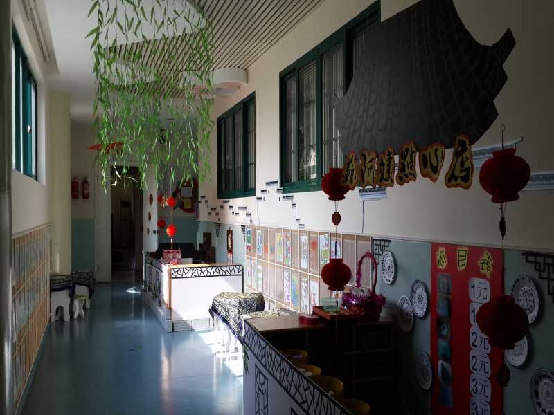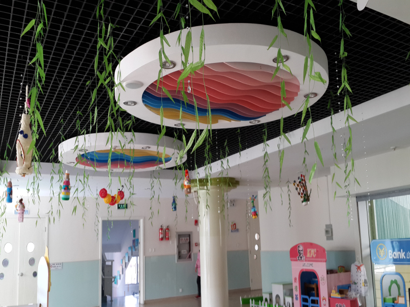 此次环境布置中老师们大胆构思、精心创设,用柳条、珠帘、瓶子等材料,把大自然搬到了室内,使园所环境焕然一新,展现出勃勃的生机。瞧!一个个精巧的创意小瓶罐点缀着绿色的春天,镶嵌在春雨、柳条中,仿佛在一起欢迎春天的到来。熙熙攘攘的“平江路”上,碧绿的竹叶依偎着粉墙黛瓦,秀丽的花伞随串串水滴从天而降,那艳红的灯笼点亮了古朴的江南春天的古城,在阳光下的一切都注入了生命与活力。