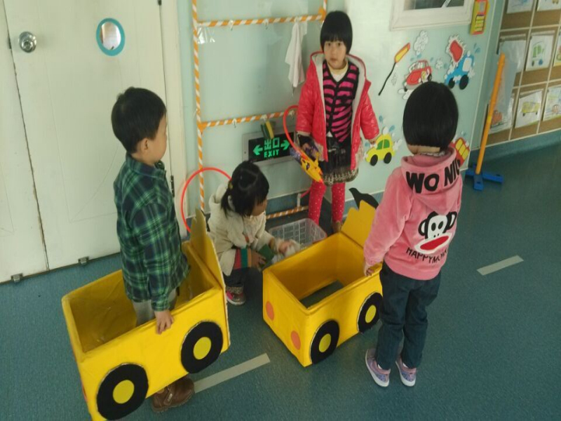 游戏是幼儿园教育的基本内容,它不仅为幼儿带来快乐,更重要的是能促进幼儿各方面素质的提高。在春暖花开的3月,小班年级组在创游主题“大马路”的基础上新增了汽车美容、汽车超市、汽车租赁等简单买卖的游戏活动,既丰富了幼儿的日常生活经验,又再一次激发了孩子游戏的兴趣。他们兴致勃勃地扮演着洗车员、收银员、服务员,还学会了一些如“欢迎光临”“请您慢走”等礼貌用语,真是有模有样。