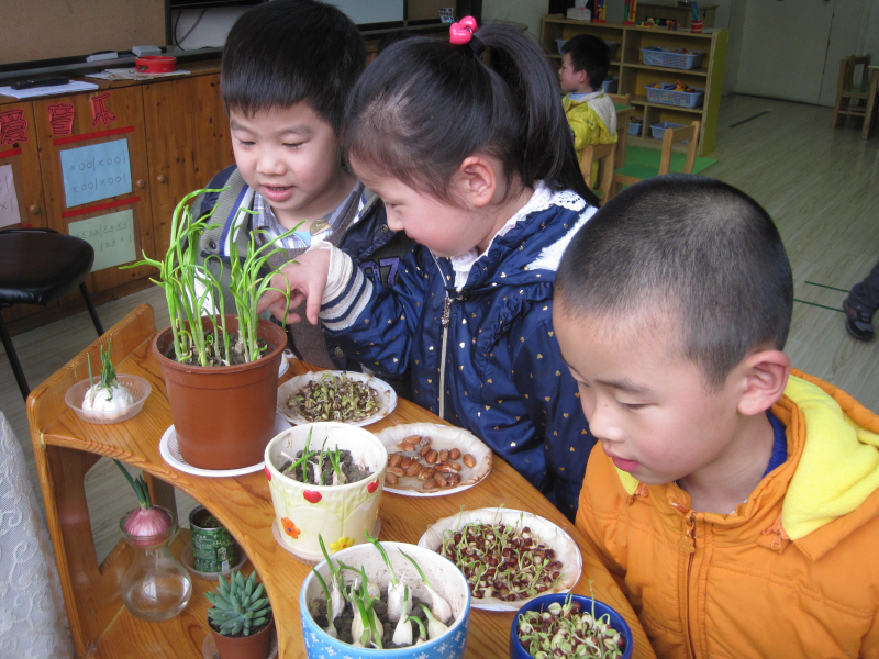 经过两周的漫长等待,越来越多的孩子传来了好消息:“我的种子发芽啦!”“我的小芽长高啦……”在孩子们的欢呼雀跃声中,老师与他们一起观察、记录,引导孩子们在发现中学习,在学习中收获。
