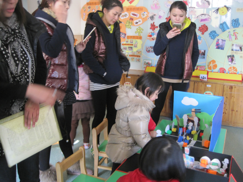 首先,我园对共同体下的姐妹园开放了区域游戏现场,来自其他园所的老师们重点对我园的学习性区域活动进行了细致的参观。老师们有的用照相机进行拍摄,有的用笔记本做好文字记录,有的用手机将各班的区域活动一一记录下来。最后,我们还听取了我园龚燕红老师和共同体内其它园所老师的精彩报告。