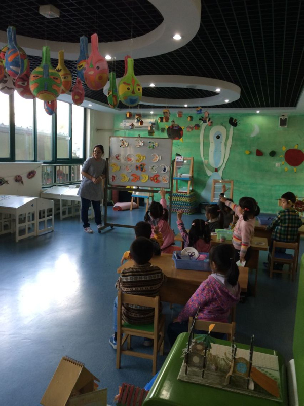 以幼儿园的课题活动为依托,三位老师结合专用活动室开展了具有我园特色的教学活动。瞧,在创意天地中小朋友们尽情发挥自己的想象力,用纸盘装饰出了各种各样五彩缤纷的小鱼。在科学探索屋中小朋友尽情探索颜色的奥秘,发现了黄色加蓝色变成了绿色,蓝色加红色变成了紫色,红色加黄色变成了桔黄色。在多功能厅里小朋友们跟着陈老师一起开心地玩了音乐游戏。小朋友们对活动内容都表现出浓厚的兴趣,在快乐的学习氛围中得到了发展。