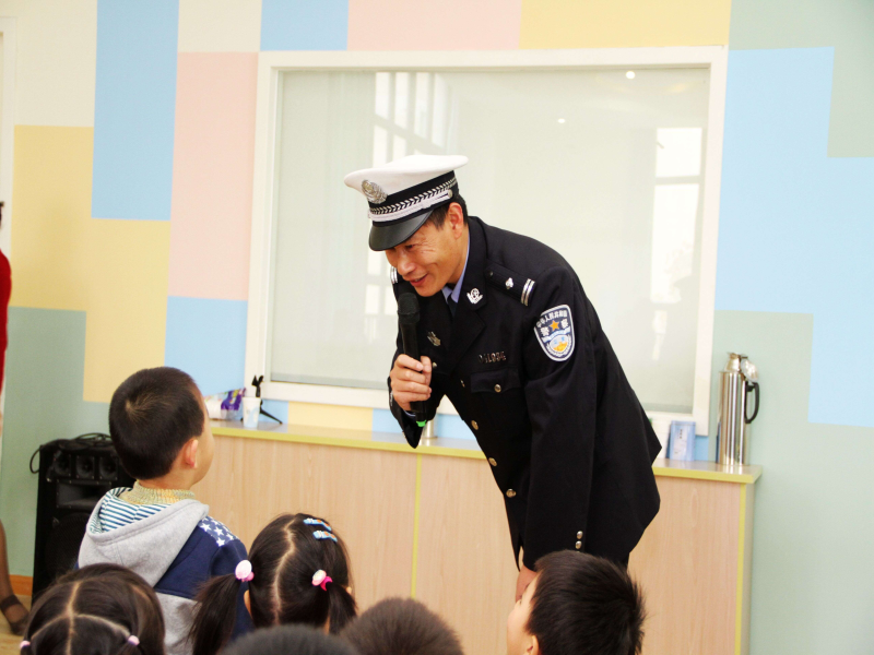 为了进一步提高幼儿园小朋友的交通安全意识和自我安全防范意识,近日,新康小学附属幼儿园邀请了苏州“最美交警”陈忠警官深入我园进行了交通安全宣传活动。