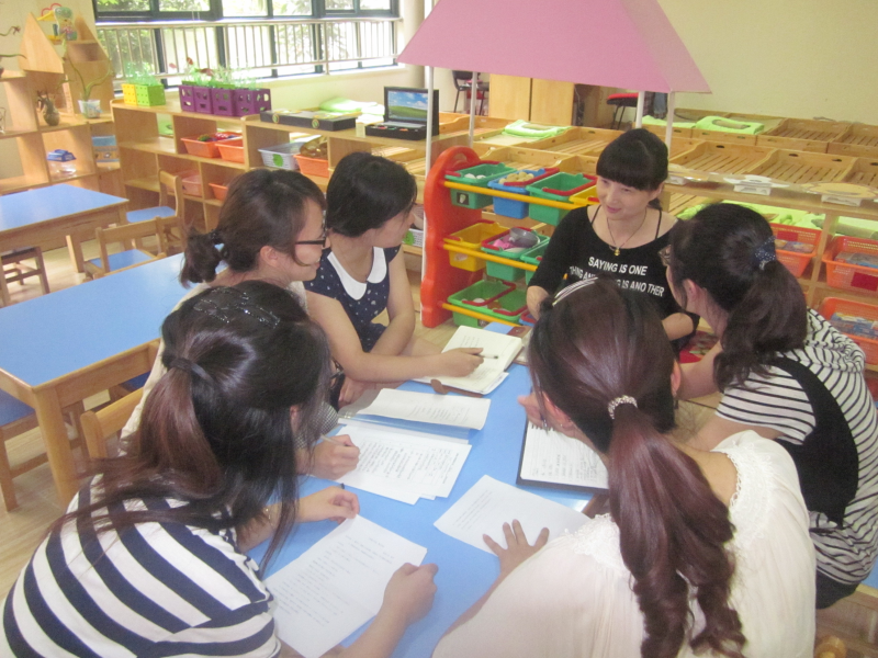 首先,教师们对于《指南》和《纲要》中的主要思想进行了一定的讨论和学习,就其中所提出的目标进行了细化和互动交流。其次,教师对数学活动中应该如何确定合理的目标、选择合适的操作材料以及选择适宜的教学行为和组织形式进行了一定的讨论和交流,每位老师都提出了自己觉得适合小班数学活动的建议。最后,再根据这些材料和要求,讨论了活动实施的方法,总结出相应的结论:可以运动多种方式导入,教学语言多样性等等。