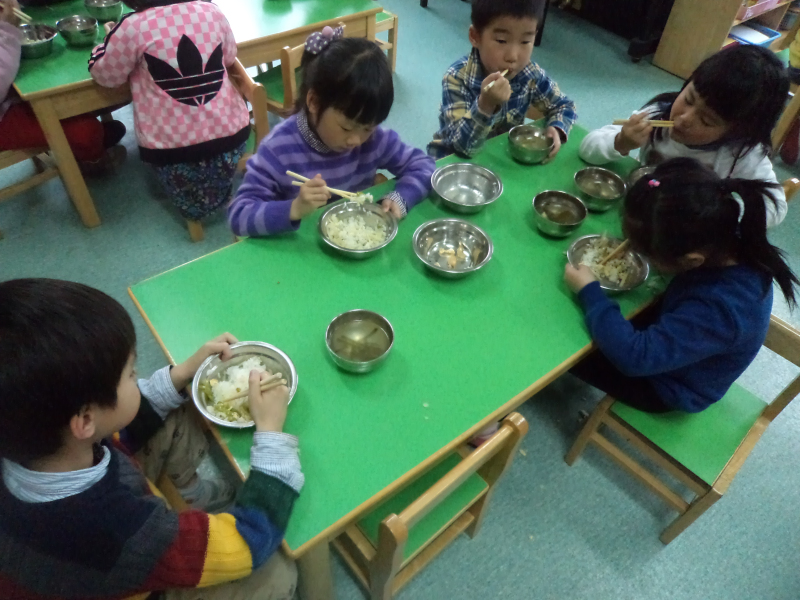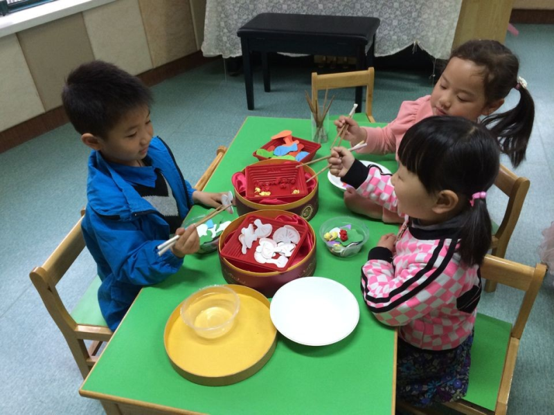 经过一段时间的训练后,瞧,小朋友熟练地使用着筷子,似乎饭菜也变得更香了。