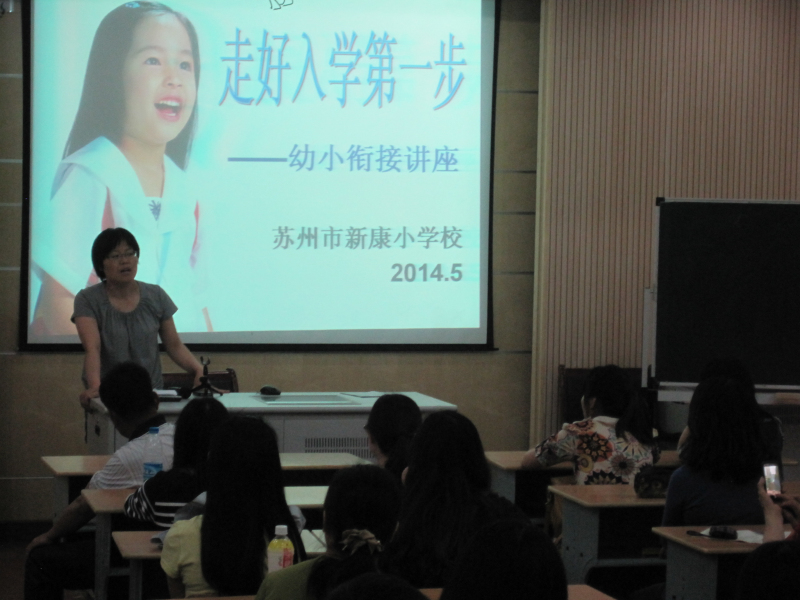 大班家长最关心的莫过于孩子入小学的问题了:如何保证教育的一致性,如何让孩子顺利地步入小学,入读小学之前家长该做些什么……为了帮助家长解除疑惑,让孩子顺利、踏实地过渡到小学生活,5月28日下午,新康小学附属幼儿园特邀了新康小学骨干教师顾伟琴老师为大班家长进行了一次名为《走好入学的第一步》的幼小衔接专题讲座。