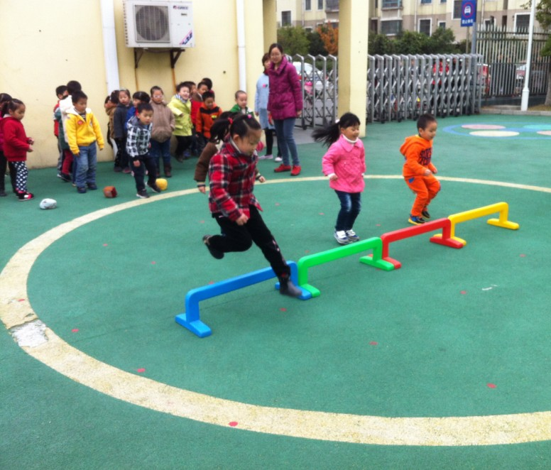 跳格子、套圈、降落伞、过小桥、走脚印等,丰富多彩的晨间体育游戏材料深深地吸引着幼儿,让幼儿玩得不亦乐乎。