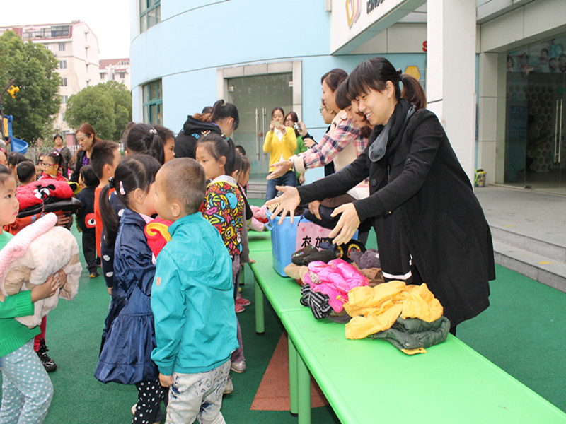 今天我们新康小学附属幼儿园为了响应志愿者的号召,也发起了爱心捐衣活动,在暖暖的阳光下,