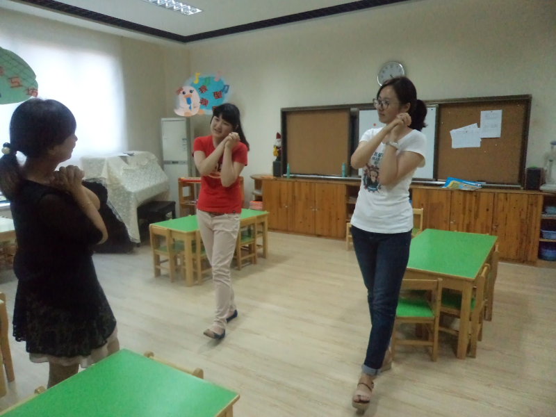 研讨中,老师们通过开学以来近两周的调研、讨论及准备工作,大家对幼儿园的韵律操进行了深入、具体的分析。首先,各班教师代表展示了本班编排的韵律操。其次,大家在年级组长的带领下围绕