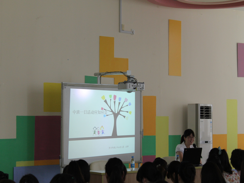 本次培训邀请了虎丘中心幼儿园的沈婷园长作了《中班一日活动应知应会》的讲座。沈园长从幼儿园一日活动中来园、户外锻炼、学习活动、游戏等各个环节入手,抓住每个活动环节的关键词,运用生动有趣的教育故事,实际事例,从幼儿行为要求到主配班教师工作要求,逐条详细地进行解读,帮助教师明确每个环节的组织要点。整个培训活动都洋溢着快乐的气氛,教师们认真地聆听、仔细地记录。