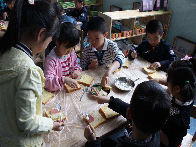 孩子们利用面包、黄瓜片、午餐肉、番茄酱、色拉酱等材料,精心为妈妈准备着自己“爱心三明治”。只见他们细致的涂上色拉酱,放上午餐肉、小黄瓜……最后还不忘画上了可爱的笑脸与爱心,表达出了自己对妈妈满满的感恩、浓浓的爱。