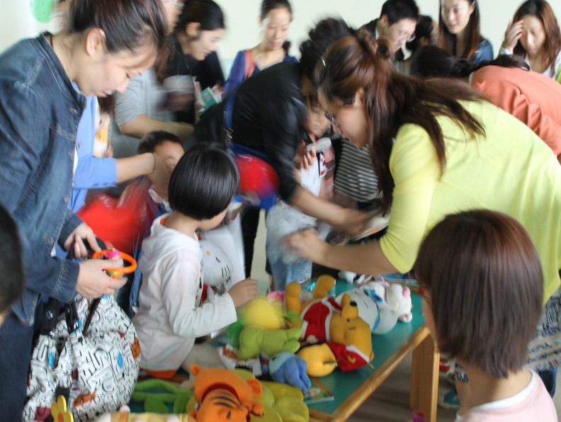 在义卖活动现场,老师与部分幼儿及家长代表做起了爱心志愿者一起热情洋溢地叫卖起来,孩子们在家长的带领下纷纷捐出了自己的零用钱,挑选购买了自己喜欢的物品,整个义卖现场热闹非凡!
