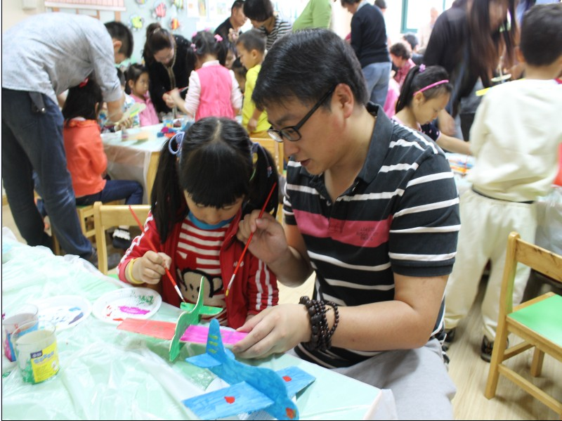 活动当天,孩子们除了从家里带来的闲置玩具和图书来作为义卖的物品以外,爸爸妈妈还亲手与孩子们共同制作了手工艺品来作为义卖物品,有手绘环保袋、手绘小飞机、自制DIY小相框等……,亲子制作活动除了可以锻炼小朋友的动手能力以外,更让幼儿懂得了通过自己的劳动也能帮助到别人,使得义卖活动更具意义。