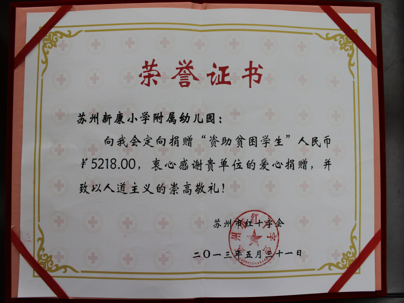 活动结束后,由家委会代表杨晓倩女士与幼儿代表和教师代表一同驱车前往苏州市红十字会将义卖所得的爱心款项全数捐出。此次义卖活动得到了家长们的肯定和大力的支持。这次图书、玩具义卖活动,不仅培养了幼儿的爱心,也增进了幼儿的社会交往能力和语言表达能力,让孩子们感受了帮助别人的快乐。爱心无止境、义卖见真情,让我们一起努力,爱在我们手心传递,让我们一起把爱传出去。