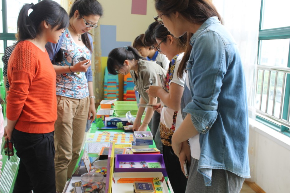 活动中,每个班的老师都展示并介绍了本班当前主题下的区域游戏活动材料。比如小班利用积木做的“汽车拼拼乐”,中班的动物棋,大班的“停车场”,都巧妙地运用简单的素材,制作了小朋友喜爱的玩具。在介绍的基础上,教师们还进行了热烈的交流,一个“巧”字成为这次研讨的中心。大家都认为,如果能用简单的物品做出具有创意的游戏材料是最值得推广和借鉴的,不仅节约时间时间,又能够让幼儿对游戏产生浓厚的兴趣。