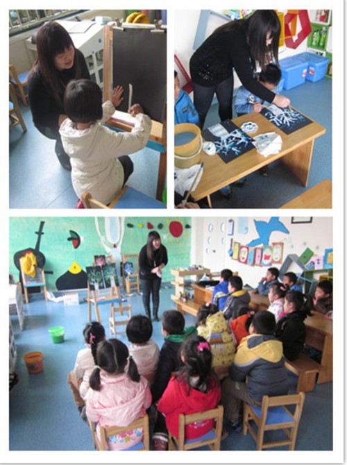 专用活动室是新康小学附属幼儿园的特色所在,丰富多彩的专用活动室活动为幼儿多智能的自主发展提供了更为广阔的平台。1月9日上午我们邀请资深的美术老师、家长志愿者钮莹女士,在创意天地里开展了一次非常精彩的创意美术活动《点彩画——一年四季》。