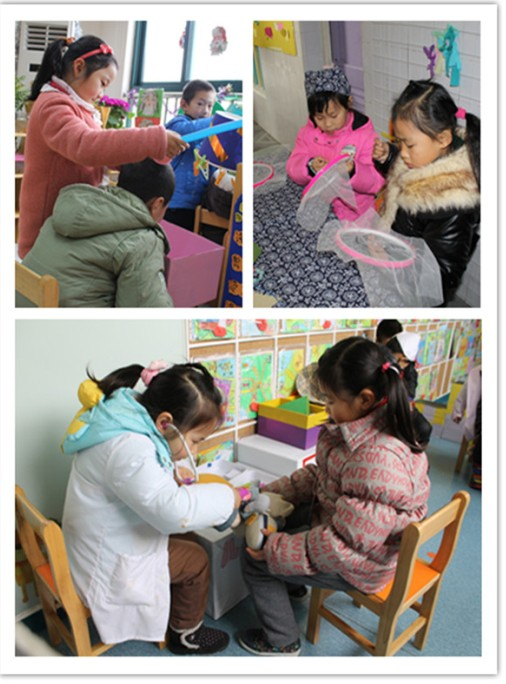 新康小学附属幼儿园大班教师结合幼儿周围生活的小区、开展的主题与区域活动,创设了《新康理发店》、《东吴医院》、《四号线地铁站》、《城市韵律》等游戏活动。科学的理念、开放的游戏环境、丰富的游戏材料、幼儿的愉快投入,给观摩老师留下了深刻的印象。来自三香中心幼儿园的大班教师则为大家展现了一个充满苏州特色的“小社会”《苏州人家大酒店》、《苏州点心店》、《小绣坊》等。孩子们置身其中,已经和游戏融为了一体,游戏的主体性得到了充分的发挥!