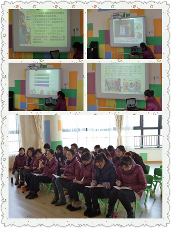 本次活动既体现了专用活动室与班级特色的整合,又突出了我园适宜性教育的理念。比如新新三班结合乐高智能室开展的小专题《利用乐高益智材料,开展小班幼儿生活游戏的研究》、乐乐四班结合图书信息室开展的小专题《在图书信息室开展中班互动式绘本阅读小组活动的研究》、阳阳一班结合创意天地开展的小专题《在创意天地中开展大班幼儿园纸艺活动的研究》等班本课题,都结合了本班幼儿的特点和专用活动是特殊的教育功能。