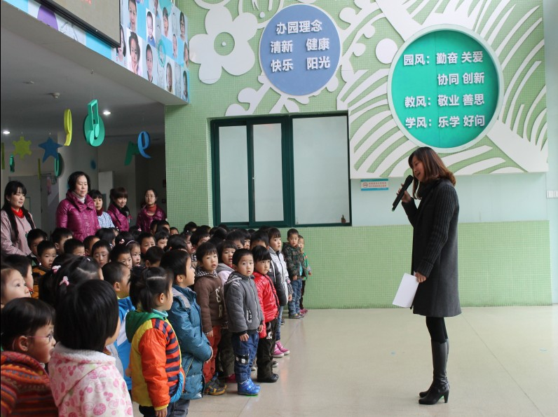 在开学典礼中,何园长代表全体老师向小朋友致新学期寄语:希望大班小朋友们学会独立、学会坚强、学会做人;中班小班小朋友要谦让有理,会分享、会学习,自己的事情自己做,做个“清新”、“健康”、“快乐”、“阳光”的新康娃。