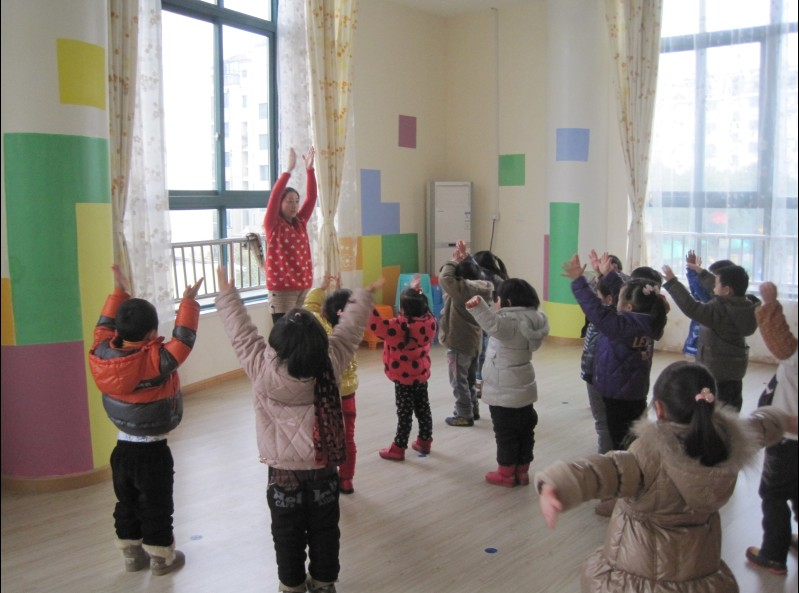 小朋友热情地迎接这位特殊的老师,他们亲切地称呼她为程老师。一开场,程老师就带着她精心准备的律动与幼儿在多功能厅跳了起来。“小手小手拍拍,我的小手举起来,小脚小脚踏踏,我的小脚踮起来……”孩子们似乎忘记了严寒,一个个高兴地伸出小手和小脚,跟着程老师做出各种可爱的造型。