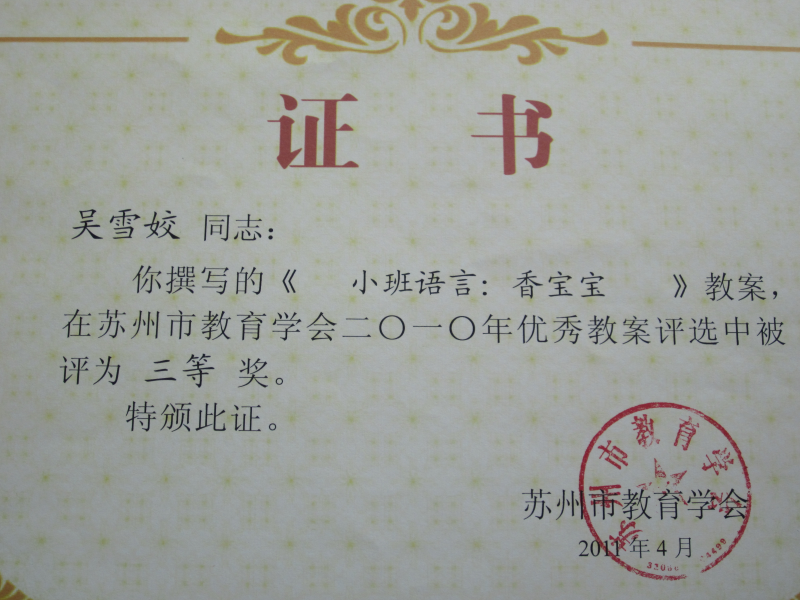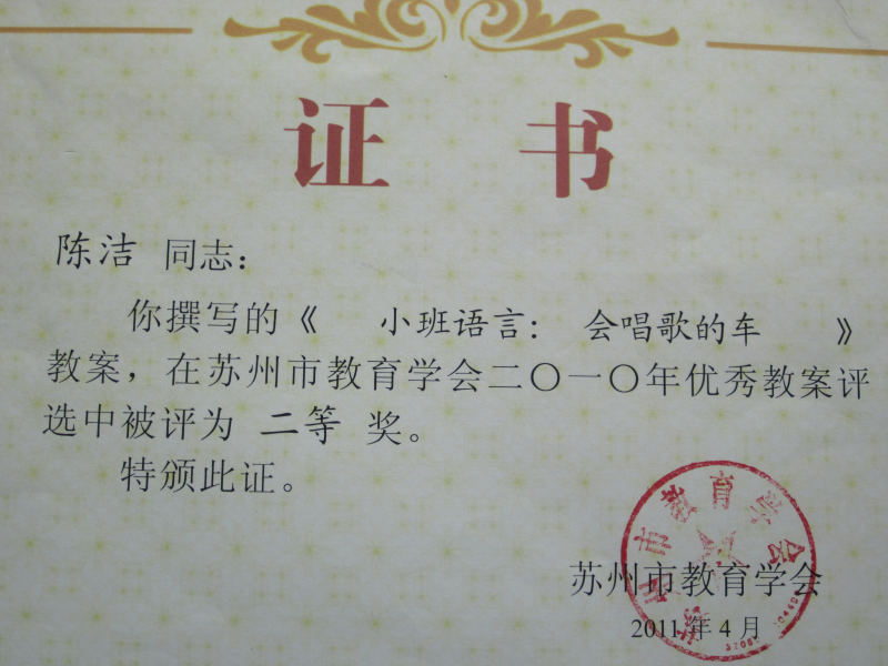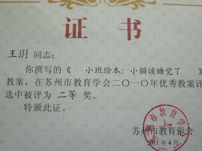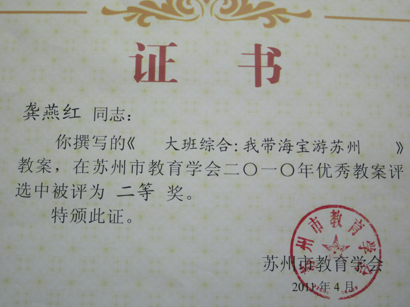 喜报:热烈祝贺我园教师在2010年优秀教案评比中取得佳绩
