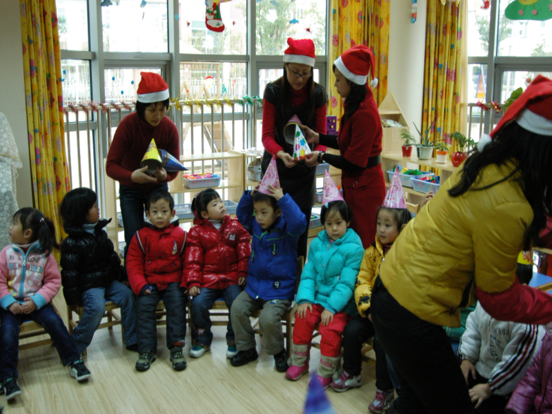 12月24日,在圣诞夜来临之际,新康小学附属幼儿园康康3班的小朋友幸福地收到了圣诞老人送来的礼物。这些圣诞老人很特殊,因为扮演者正是孩子们的爸爸妈妈;这些礼物也很有意义,因为这是家长们精心准备的。家长们在前期做了大量的工作,如:收集36个孩子的照片并无偿制作精美的年历;亲手制作的圣诞饼干美味又营养;还有漂亮的圣诞帽、好吃的小糖果等各种小礼物,让孩子们惊喜连连。伴随着欢快的圣诞歌曲,孩子们围绕着美丽的圣诞树,与可爱的圣诞老人、家长志愿者们游戏、留念,共同度过了温馨又欢乐的时光。相信这次活动定会给孩子五彩的童年抹上绚烂的一笔。