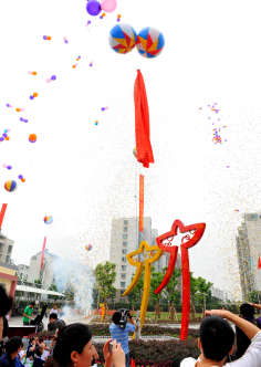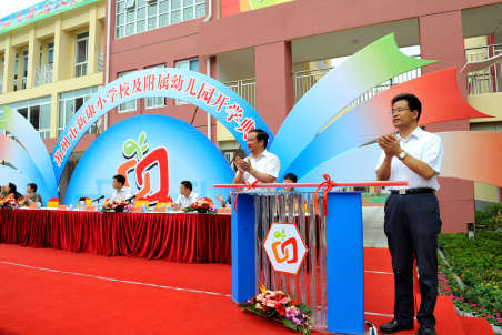 市政府王鸿声副市长、市政府陆俊秀副秘书长、市教育局鲍寅初局长、区委路军书记、区副区长郑利江、区人大常委会陈忆善主任等出席了本次开学典礼。庄严的国歌声、朗朗的读书声揭开本次活动的序幕。一群纯真的孩子手捧鲜花,手拿汽球,在王鸿声副市长、鲍寅初局长为学校推杆、揭牌时,在鞭炮齐鸣、礼花飞扬中一起放飞了自己的梦想,把整个活动推向高潮。